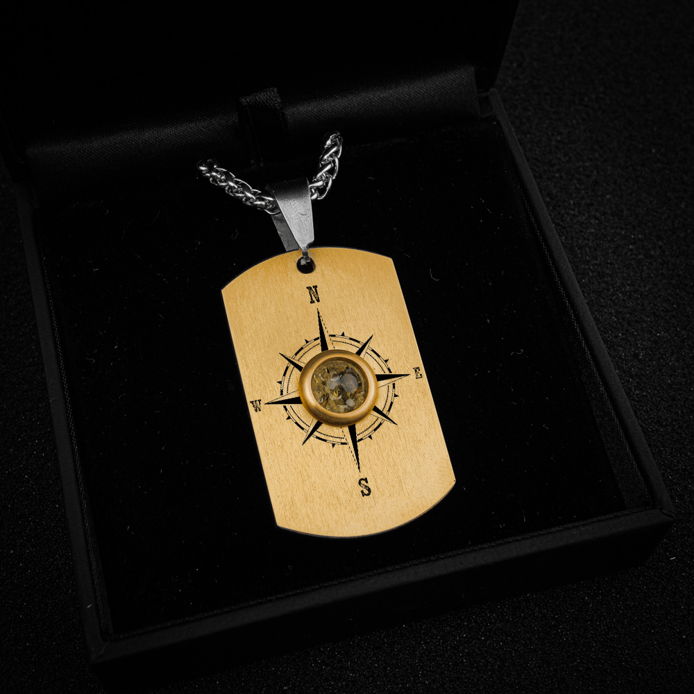 Wykonany wraz z Tomaszem Ołdziejewskim - Nieśmiertelnik Tytanowy z osadzonym bursztynem bałtyckim. Starannie wyszlifowany z dbałością o najmniejszy szczegół. Dodatkowo przyozdobiony grawerowanym laserowo wzorem róży wiatrów. Powłoka wykonana przy wykorzystaniu technologii GOLDSHIELD™.